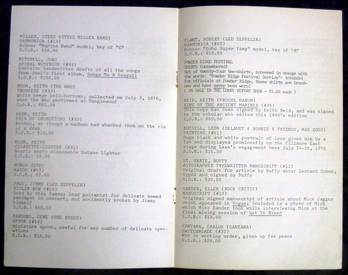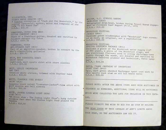 "Rock Relics Auction Show", where the Fillmore East Program Collection